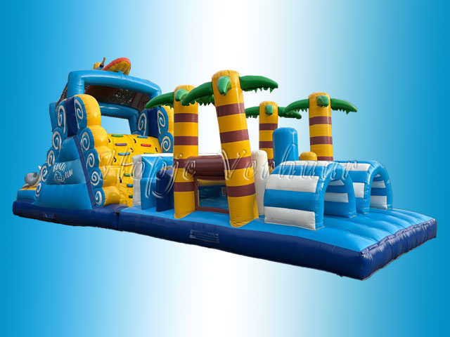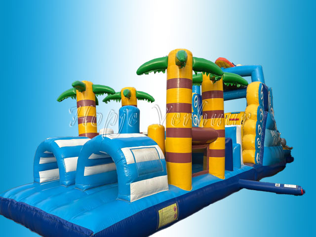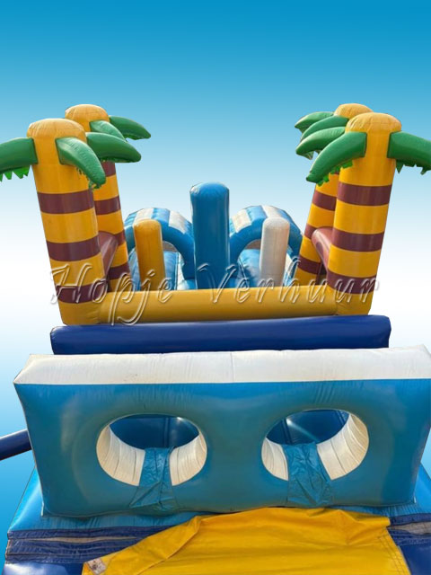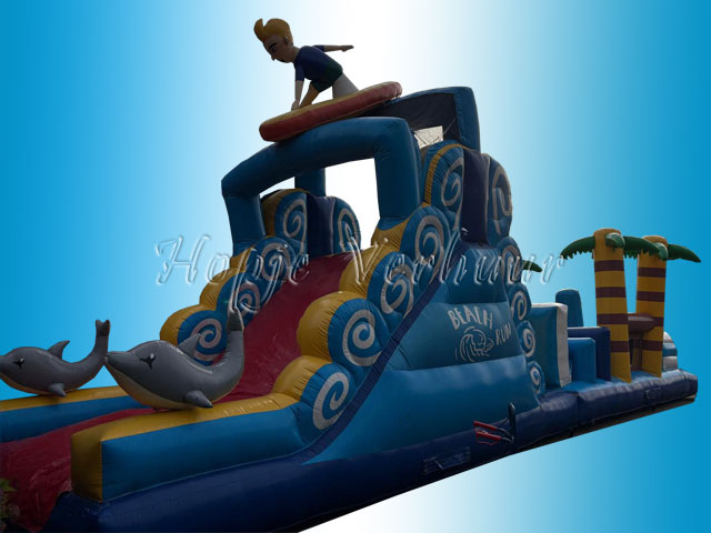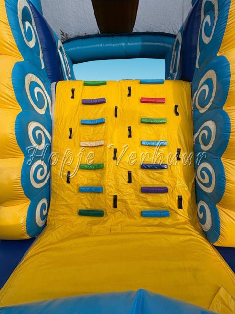 Onze 13,5 meter lange stormbanen zijn perfect voor iedereen die wel zin heeft in een wedstrijdje! Wie bereikt als eerste de overkant van deze opblaasbare hindernisbaan? Kruip, ren, spring, klim en glijd over het dubbele parcours in Surf thema.