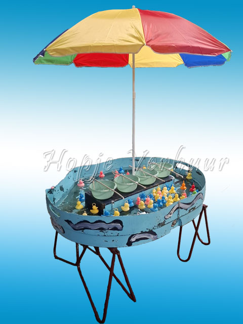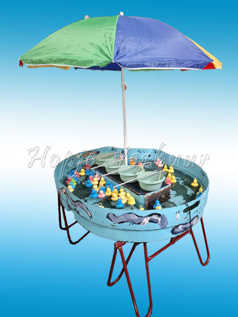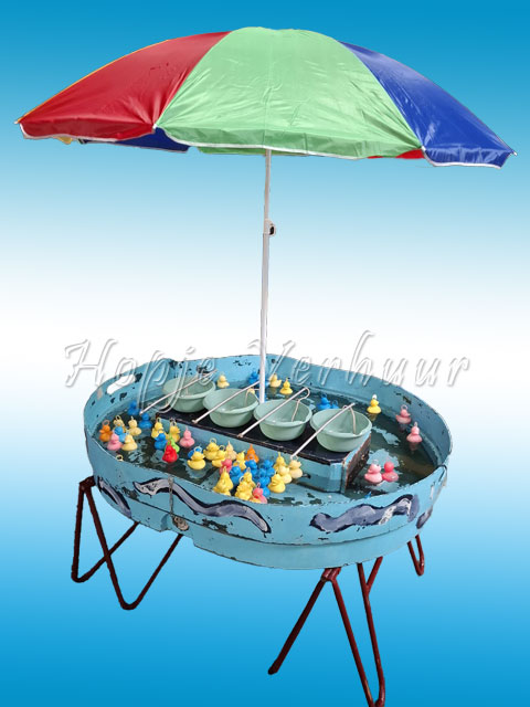 Probeer met de 4 hengels zoveel mogelijk eendjes te vangen. Eventueel binnen een te bepalen tijd. Ook is dit spel te gebruiken als geluksspel, zodat er prijzen aan gekoppeld kunnen worden.