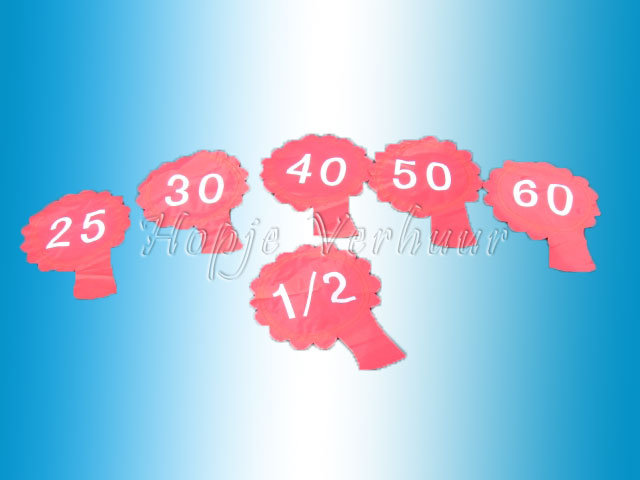 Leeftijdsbanner van 50 wodt altijd standaart mee geleverd bij de poppen.