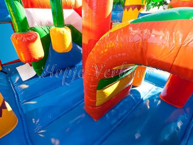 Beleef urenlang speelplezier op ons populairste springkussen uit het assortiment: De Multiplay. De inflatable heeft veel speelmogelijkheden met leuke objecten op het springvlak en een coole glijbaan. De Multiplay heeft opvallende 3D objecten op het springkussen en de inflatable is passend bij het thema vormgegeven. De kinderen komen langs allerlei afbeeldingen en kleurrijke obstakels, wat het thema helemaal compleet maakt. Dit springkussen in het thema maakt het feest van jouw klant helemaal compleet!